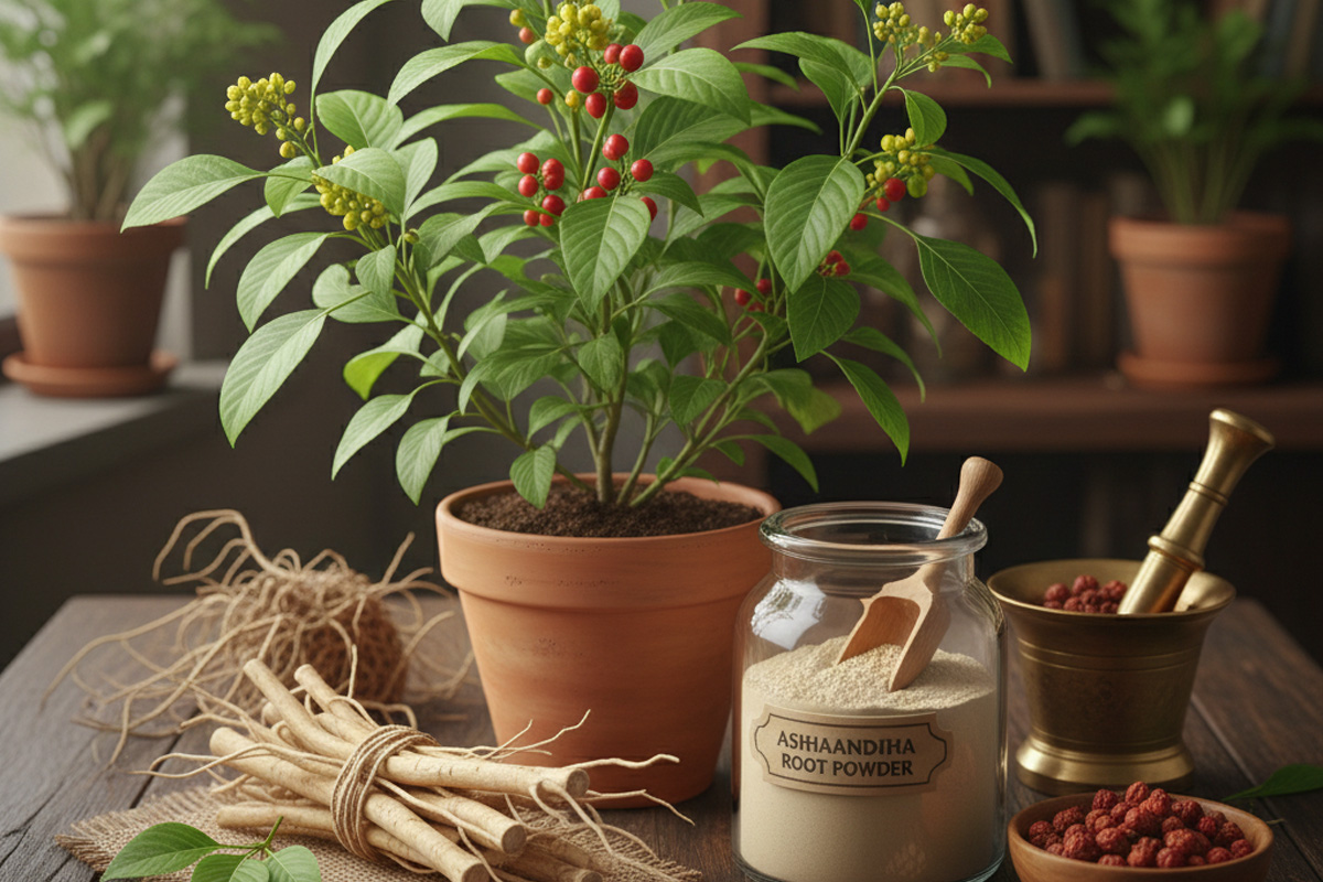 The ashwagandha plant is a small shrub with yellow flowers that’s native to India and North Africa. Extracts or powder from the plant’s root or leaves are used to treat a variety of conditions. Ashwagandha is a prominent herb in Indian Ayurvedic medicine and has become a popular supplement due to its health benefits.