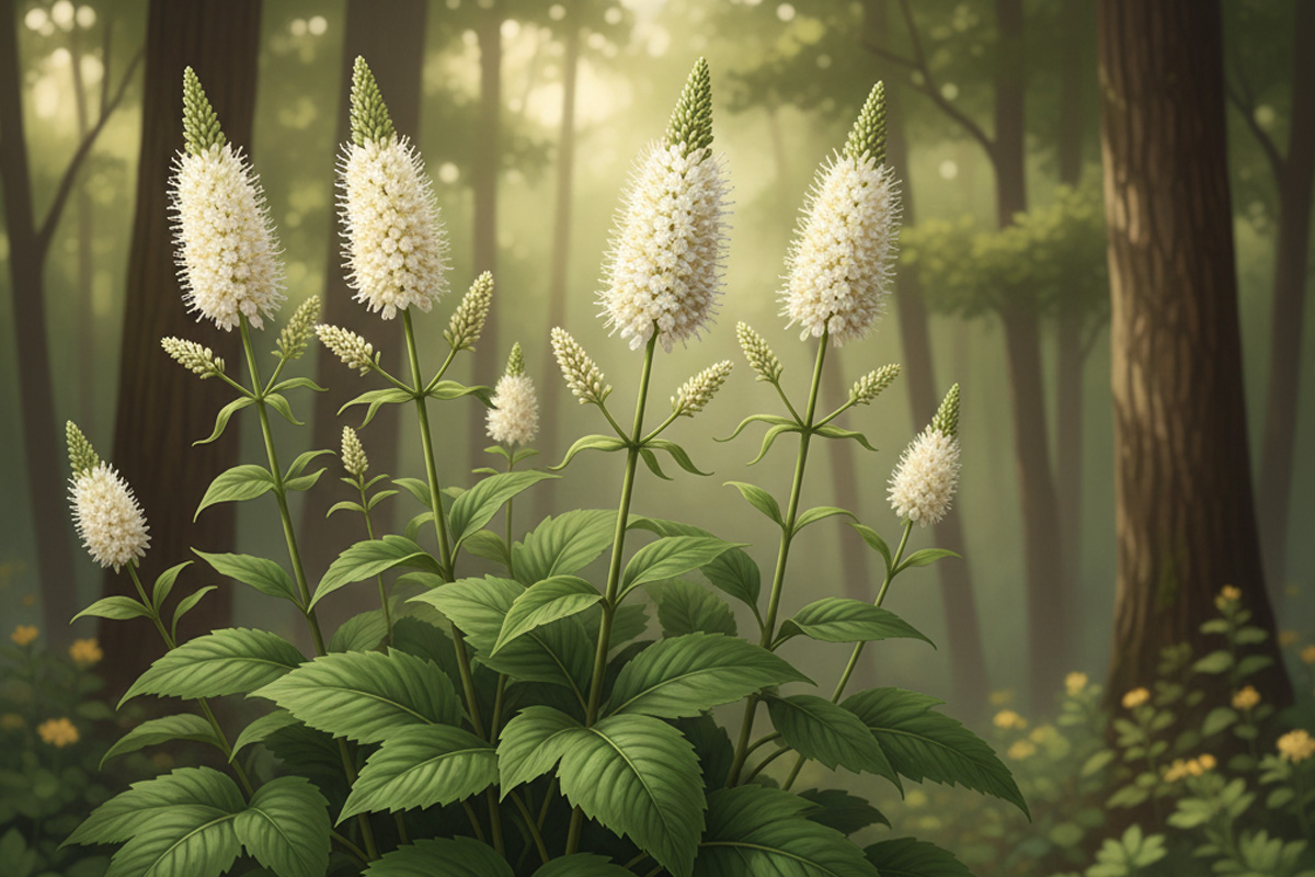 The roots and rhizomes of this herb are used medicinally. A tea from the root has been recommended for sore throat. The Latin name cimicifuga means “bug-repellent” and the plant has been used for this purpose. American Indians used the plant to treat general fatigue, kidney ailments, malaria, rheumatism, sore throat, and gynecological disorders (eg, menstrual cramps, ease of labor). North American colonists used the herb for treating menstrual disorders, bronchitis, nervous disorder with spasms, swelling, fever, hysteria, itch, back pain, nervous disorders, snakebite, yellow fever, and uterine disorders. In traditional Chinese medicine, the herb was valued for its ability to reduce swelling, relieve pain, and lower fevers.