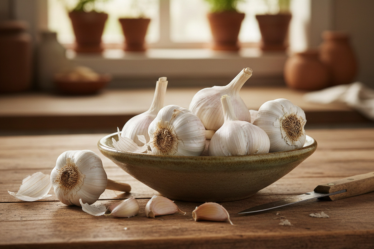 One potential health benefit from garlic might be obtained by chopping or crushing it and letting it sit before heating it along with other recipe ingredients. Chopping will activate alliinase enzymes in some of the cells, and sitting will allow those enzymes to convert some of the garlic’s allin into allicin. Both alliin and allicin are sulfur-compounds and while both provide health benefits, the health benefits of allicin are especially well-documented in research studies.