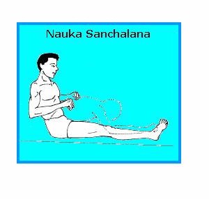 - Keeping the legs together, move your arms and upper body in the boat rowing motion.