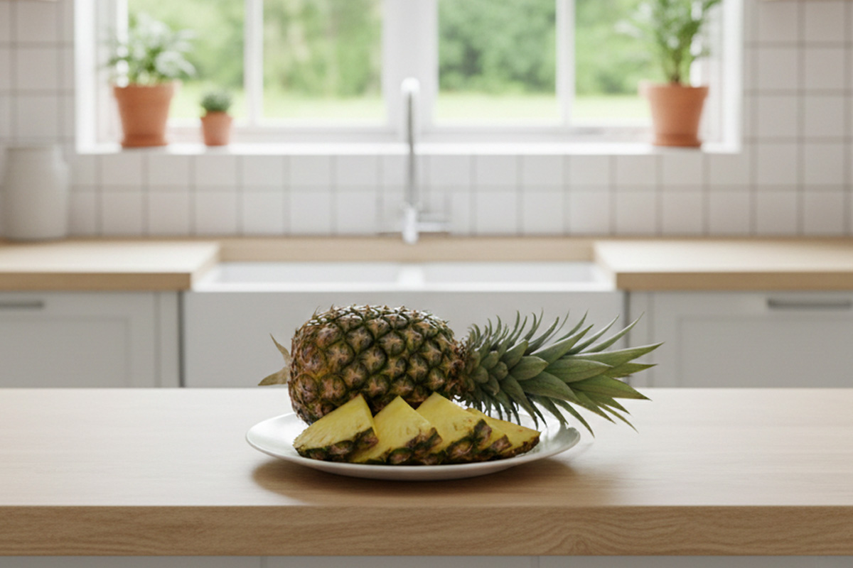 Pineapple is a perennial, drought-tolerant, tropical plant. Pineapple have lots of important properties that are essential in keeping you healthy. Pineapple is packed with compound bromelain that possess antidemocratic, anti-inflammatory and fibrinolytic properties.Pineapple is a source of important minerals and vitamins such as foliate, magnesium, thiamin, riboflavin. Pineapple contains half of the daily-recommended value of vitamin C. Pineapple belongings to the Bromeliaceae family.