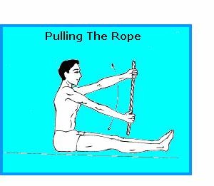 - Raise the arms alternatively up and down as though pulling a rope