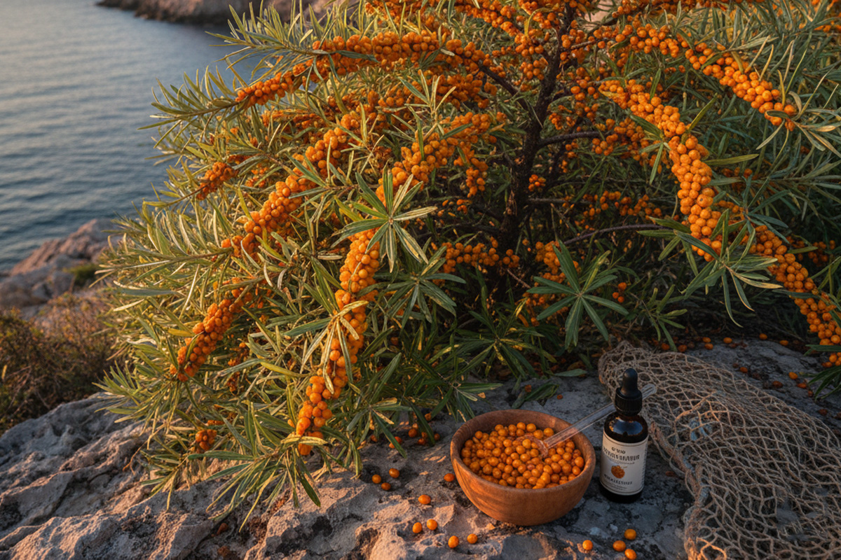 Sea buckthorn (Hippophae rhamnoides) is very effective for hydrating mucous membranes and alleviating vaginal dryness. It contains palmitoleic acid, a fatty acid found in human skin that helps moisturize and heal it.